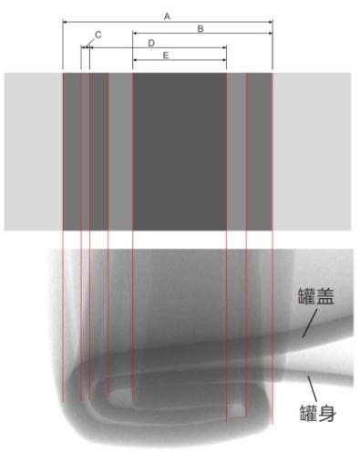 对易拉罐卷封结构进行透视摄影,然后通过软件处理图像,测量卷封结构。