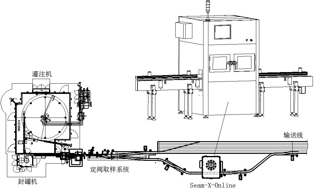 Seam-X®-On-Line在线自动卷边扫描仪,采用非破坏性方法测量易拉罐的卷封尺寸,安装在生产线旁路,抽样检测。