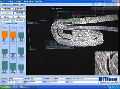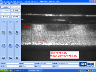 11)   12个检测项目:紧密度,卷边长度、罐身钩长度、罐盖钩长度、迭接长度、卷边间隙长度、迭接率、罐身钩搭接百分率、盖钩搭接百分率、图像卷边厚度,真实卷边厚度*,真实埋头度*,;