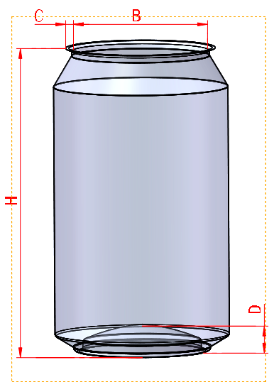 B:can end inner diameter C:and flange width D:dome depth H:Can body height