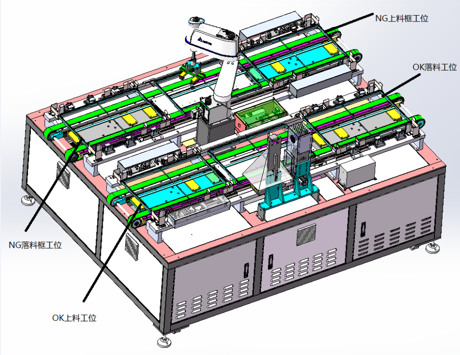 Higher Detection Accuracy: Achieved through camera vision alignment. Automatic NG Handling: NG samples are automatically collected via material boxes. Automated Sorting: OK products are returned to their trays; NG products are also returned to trays, with automatic tray handling for recycling. |